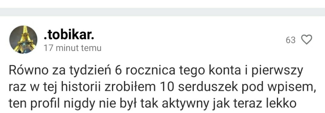 AUTOR•Równo za tydzień 6 rocznica tego konta i pierwszy raz w tej historii zrobiłem 10 serduszek pod wpisem, ten profil nigdy nie był tak aktywny jak teraz lekko pojеbane