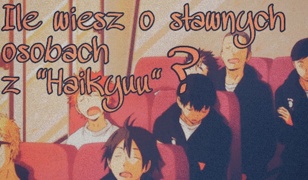 W quizie możemy znaleść postacie z anime „Haikyuu”. Quiz Jest o sławnych osobach z Haikyuu czyli o Hinacie Shōyō, Daichim Sawamurze i Kōshim Sugawarze. Miłego odpowiadania na pytania!! ;))