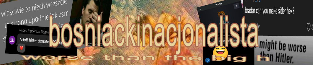 bosniacki anarchonaziol gej z zona i pieknymi corkami 14 letni starzec homofob tolerujacy spolecznosc lgbtq+ rasista kochajacy kazda narodowosc ateista wierzacy w boga konserwatywny punk pisowiec kochajacy tuska skrajnie prawicowy lewak na centrum kompasu politycznego liberal popierajacy ustroje... Czytaj dalej