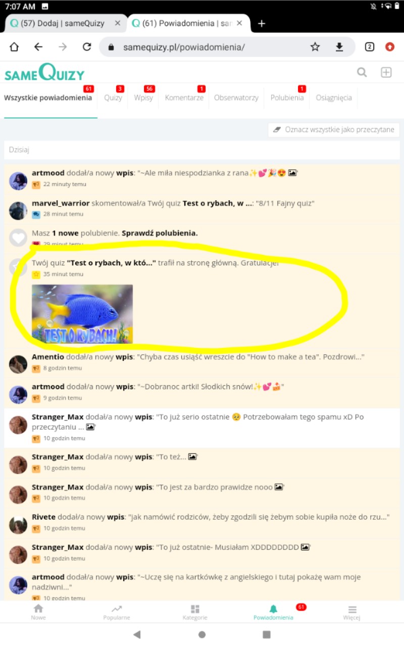 — tu tututututtututuuuuu! 🎉Quiz o rybach trafił na SG *taniec szczęścia*🤪 i to nawet bez sprawdzania!