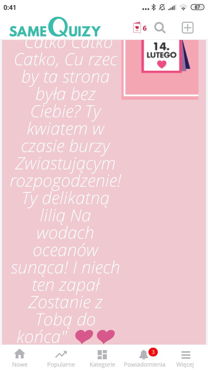 AUTOR•Może te walentynki dzięki sq nie są takie złe? W szkole będzie gorzej…Wiecie co? Dzięki tym miłym słowom na walentynkach mam ogromny uśmiech na twarzy☺️ Hehe dobrze że mnie z nikim nie shipujecue XD