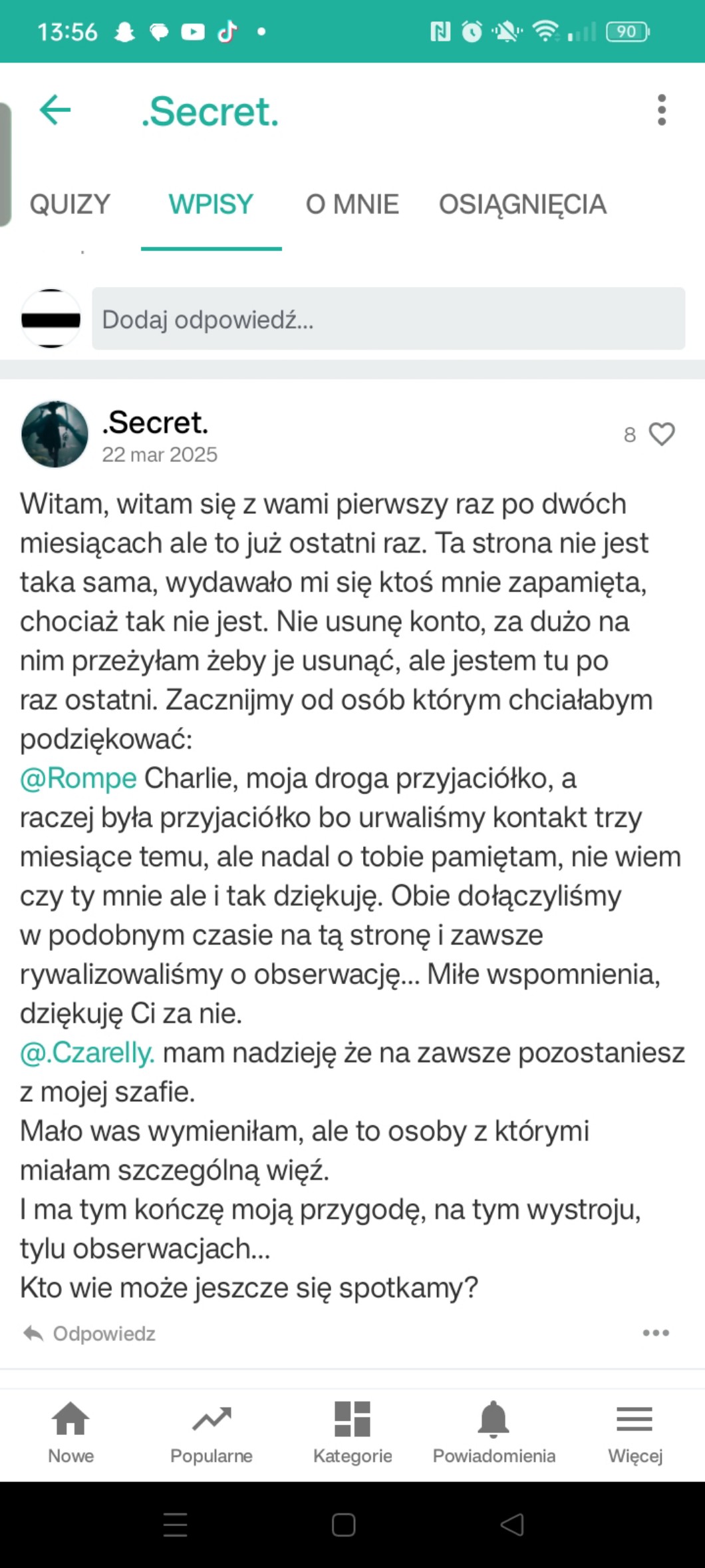 Przy pomocy wpisów możesz zadać autorowi pytanie, pochwalić go, poprosić o pomoc, a