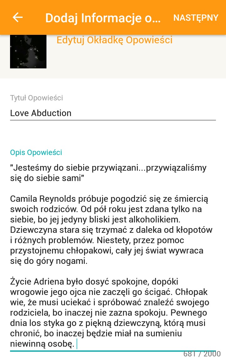 Jeśli chodzi o Wattpada to myślę, że jutro dodam prolog nowej serii, która nie będzie udostępniona na SQ. Jeżeli Was zaciekawi ta historia (możecie przeczytać opis poniżej👇) zapraszam na moje konto na Wattpadzie. Link jest w moim bio 😀