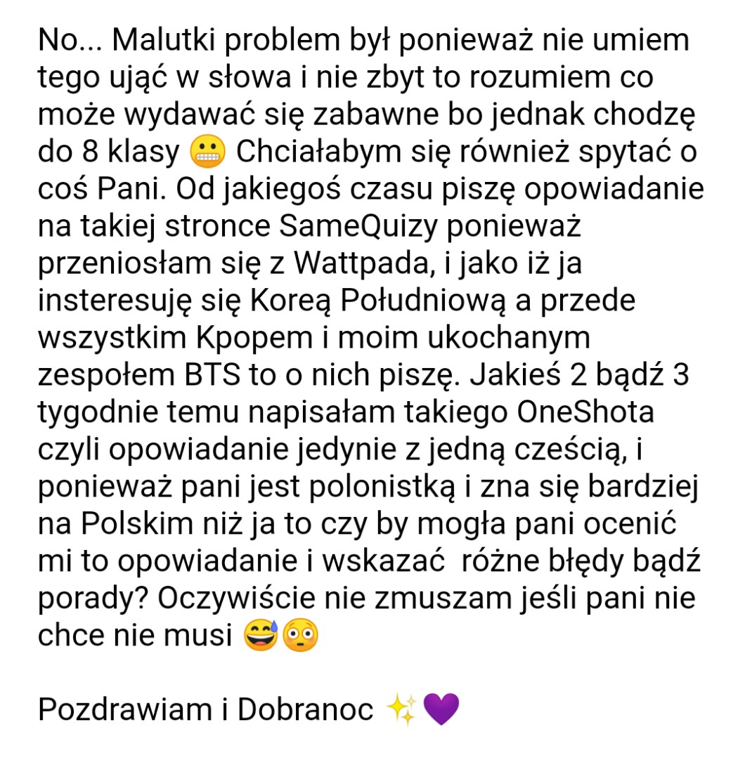 • AUTOR@cherryeol Nie no spoko xD Przeżyje z tą ortografia. Przynajmniej pani zobaczy jak moja dysgrafia się polepszyła od 4 klasy xDD