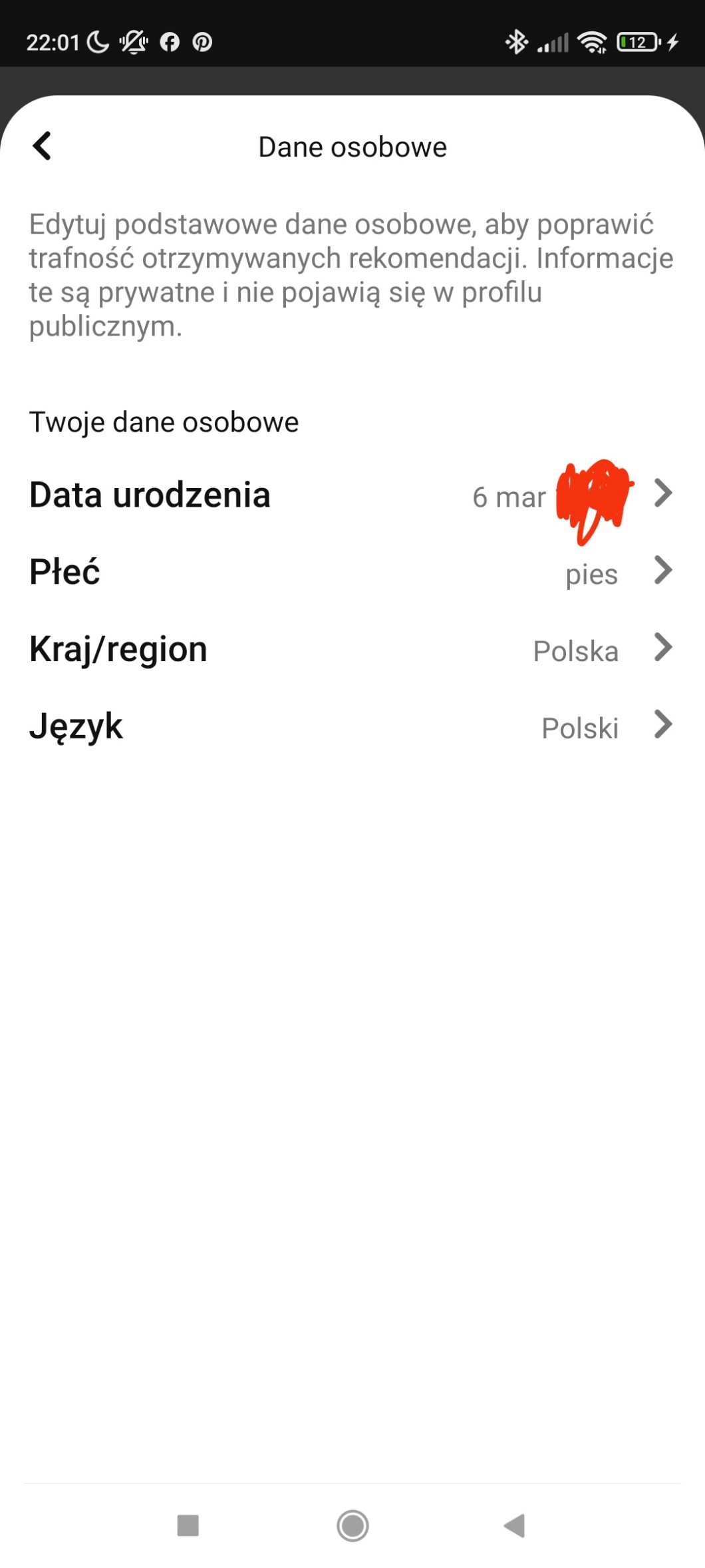 No nwm jak ty ale ja na (chyba) pinterescie ustawiłam plec jako pies xd