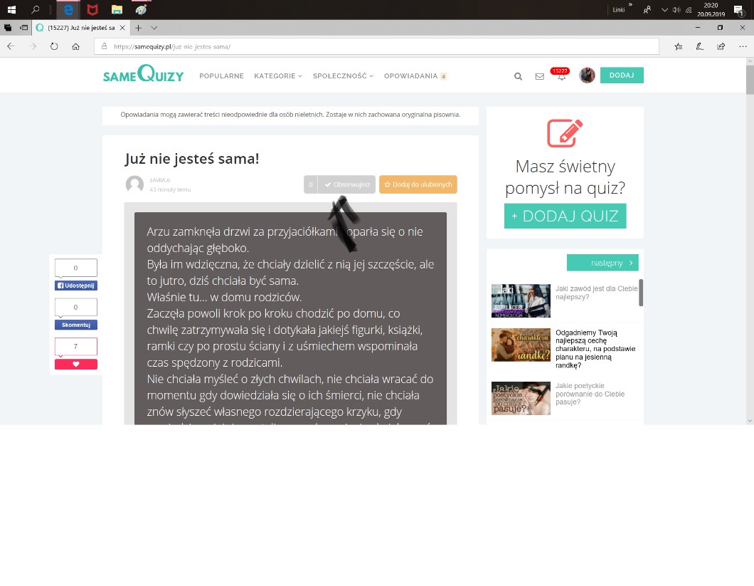 Wpadać tu i serducho dawać https://samequizy.pl/juz-nie-jestes-sama/, a może nawet obserwację
