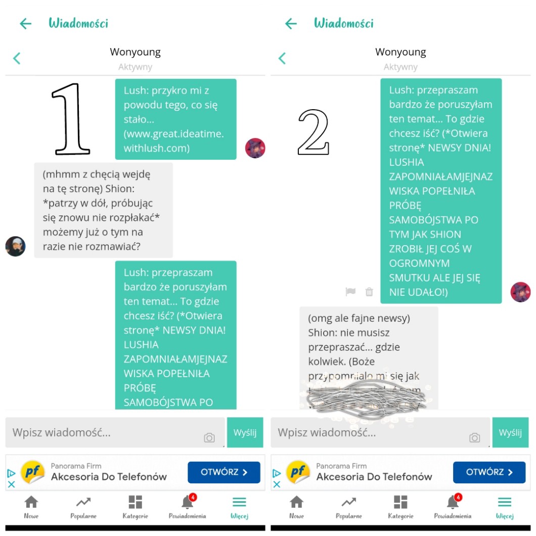 (Paczcie na nawiasy lol) (nie jedz mnie @Wonyoung za to że to opublikowałam, jestem niesmaczna i przesolona…)