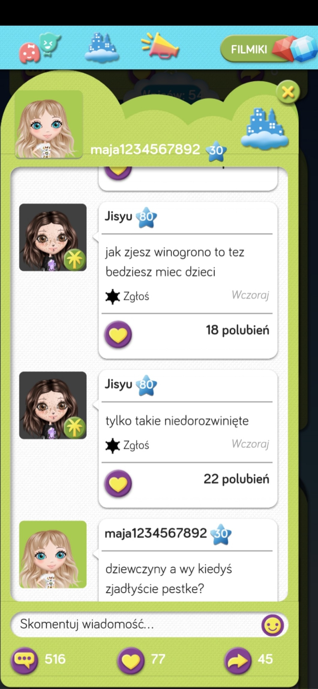 Przy pomocy wpisów możesz zadać autorowi pytanie, pochwalić go, poprosić o pomoc, a