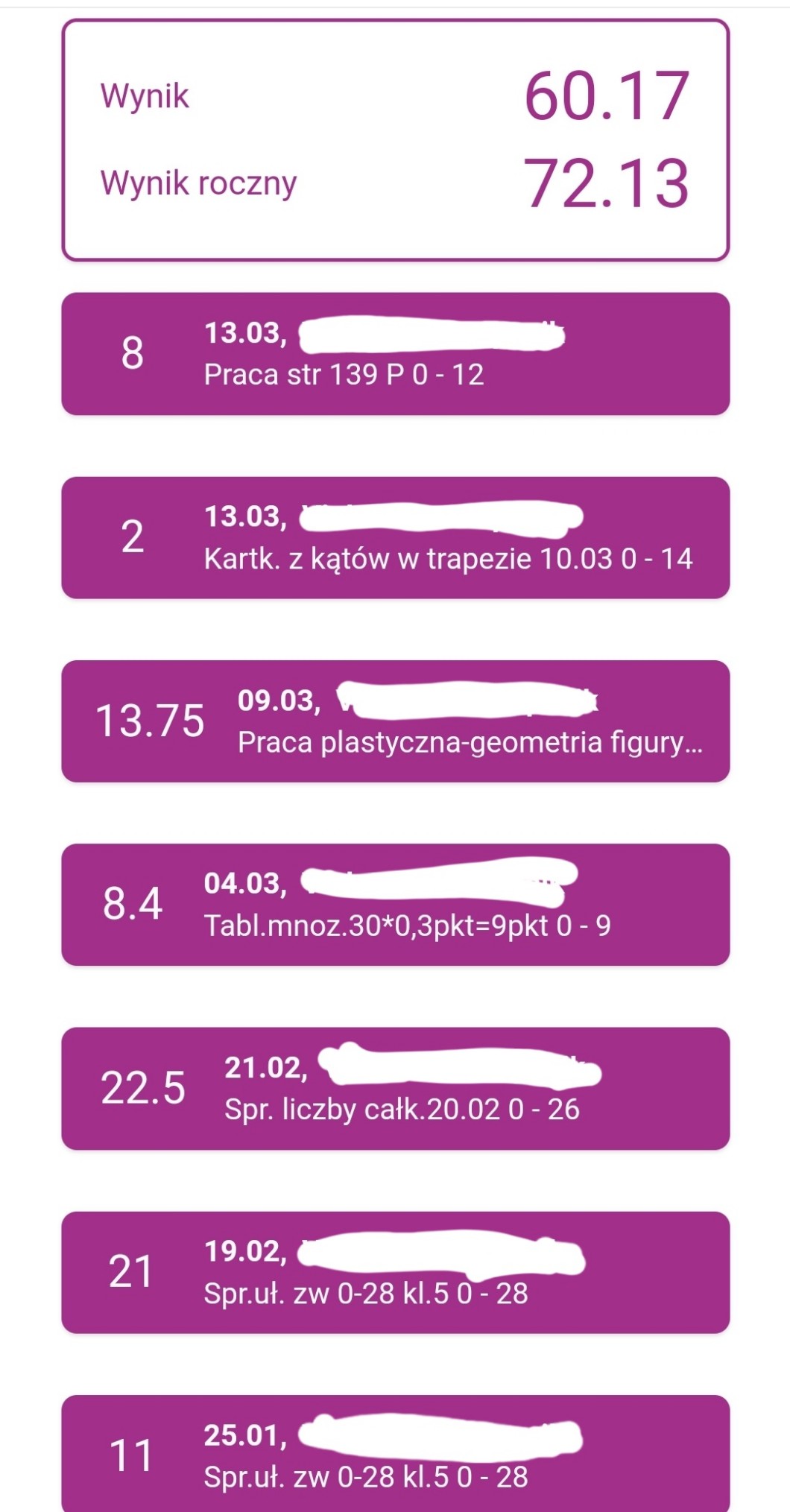Ja poprostu z niektórych przedmiotów mam punkty, zamiast normalnych ocen
