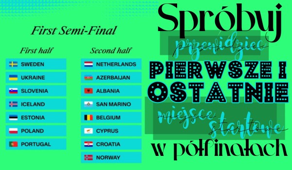 Jak myślisz, który kraj otworzy pierwszy i drugi półfinał, a który zamknie? Zagłosuj zanim poznamy oficjalną kolejność startową! Zobaczmy, czy wyniki głosowania okażą się prawdą…