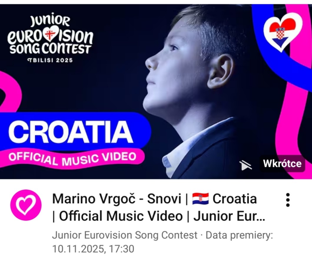 W ogóle to z Eurowizji Junior nie znamy tylko piosenki Chorwacji, która będzie miała premierę już w poniedziałek o 17:30