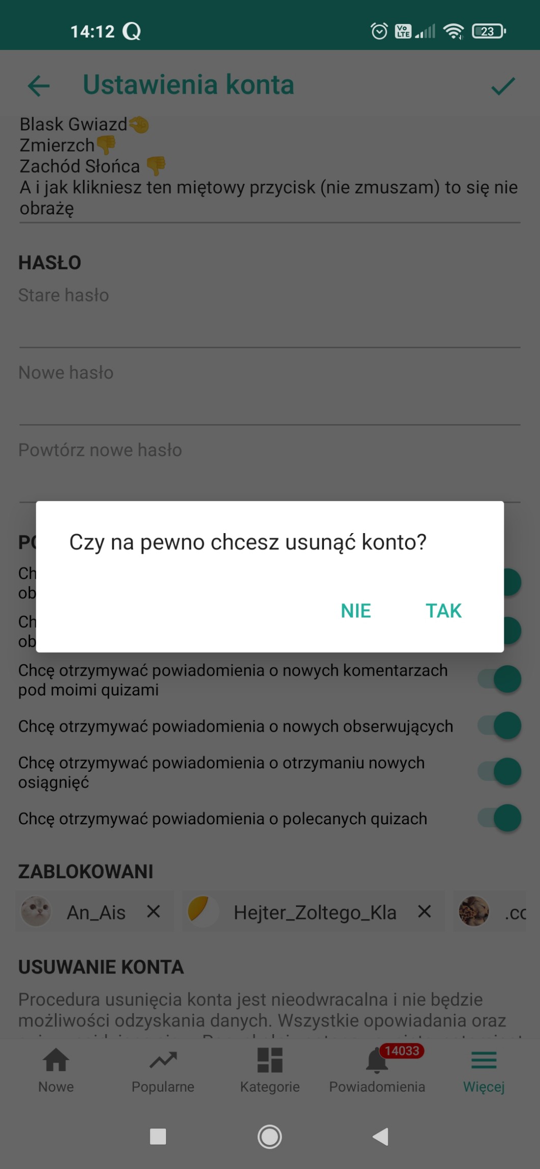 AUTOR•Narazie nie usuwam konta ale się zawiesze…. Jak to klikę to będę szczęśliwa