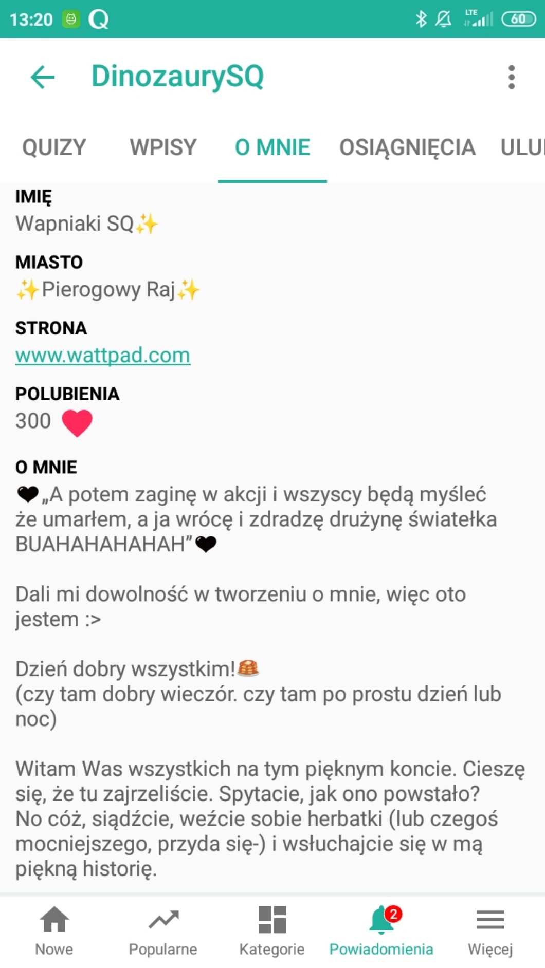 (Ogólnie, w o mnie mamy zapisane, że założyliśmy konto 6 sierpnia, a osiągnięcie przyszło nam dzisiaj xd)