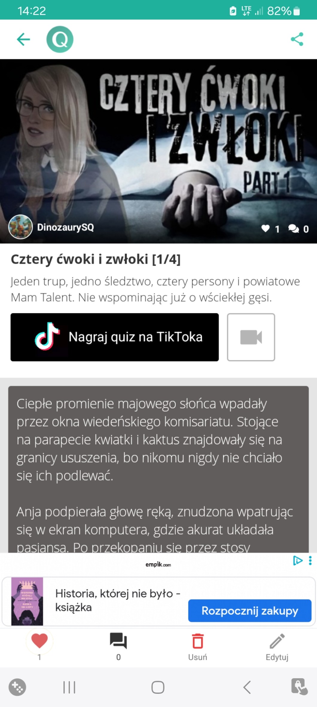 Dokładnie rok temu pod wpływem jakiejś nocnej inspiracji postanowiliśmy założyć to konto. I niespodzianka, ale przetrwało. Udało nam się w tym czasie wyprodukować 13 quizów, co daje quiz na miesiąc. Nie jest źle w sumie xd