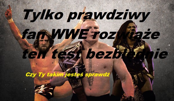 Tylko prawdziwy fun wwe rozwiąże ten test na fun a wwe bezbłędnie. A jeśli nie uważasz się za nawet najmniejszego fun a wwe to nie rozwiązuj go, nie marnuj cennego czasu.