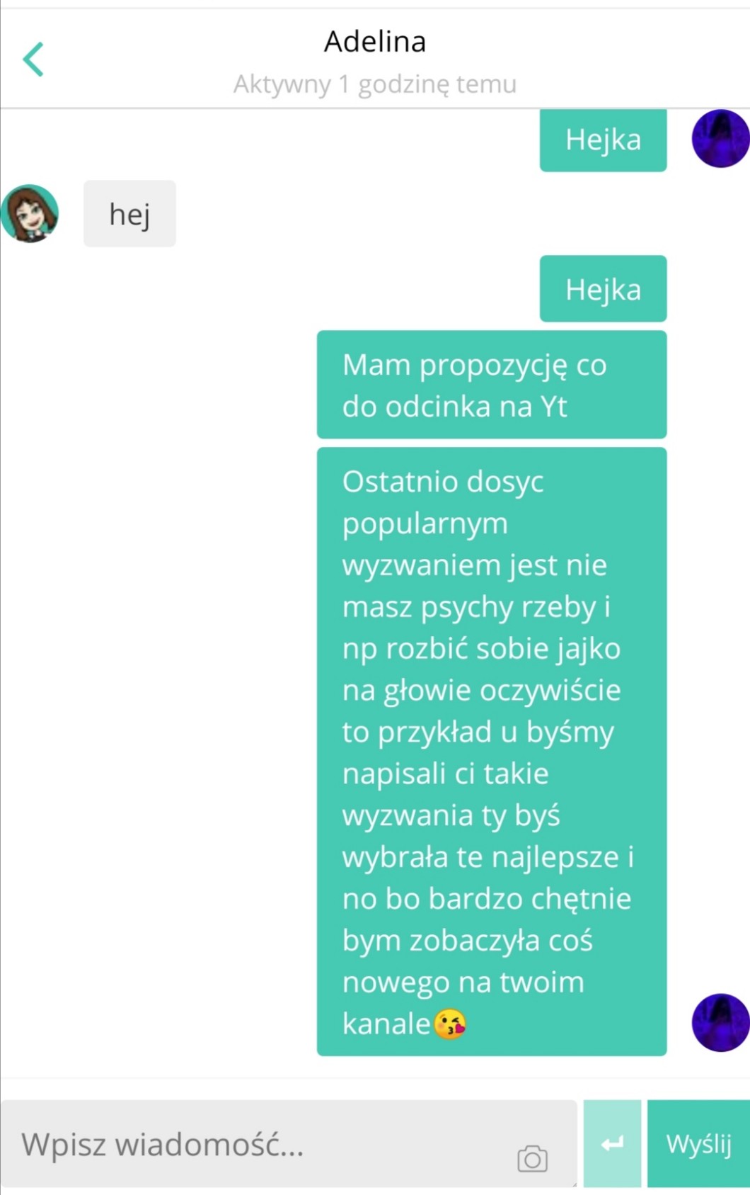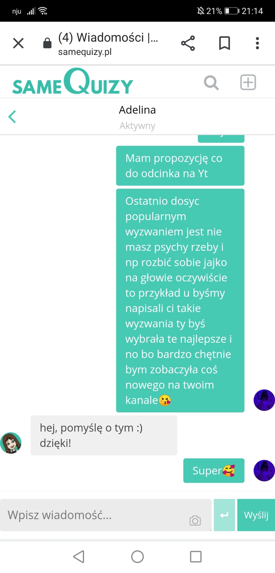 AUTOR•Napislam do Adeliny ciekawe co napisze a wy co myślicie o tym pomyślę?