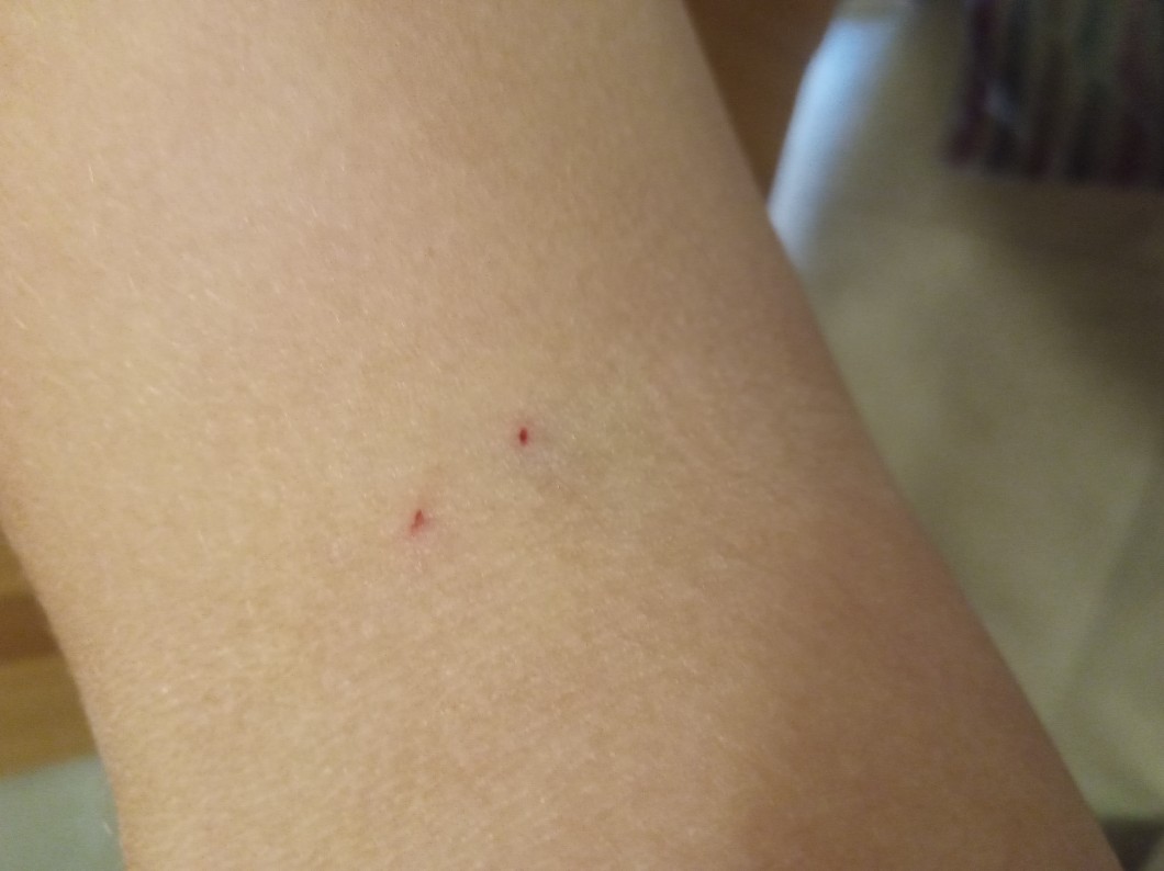 Mam dwa nacięcia od igły, ponieważ Pani nie mogła mi znaleźć żyły.