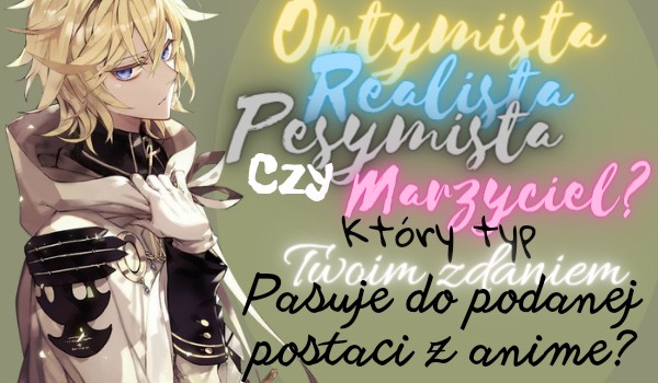 Zagłosuj czy dana postać z anime twoim zdaniem zasługuje na miano Optymisty, Realisty, Pesymisty czy — Marzyciela.