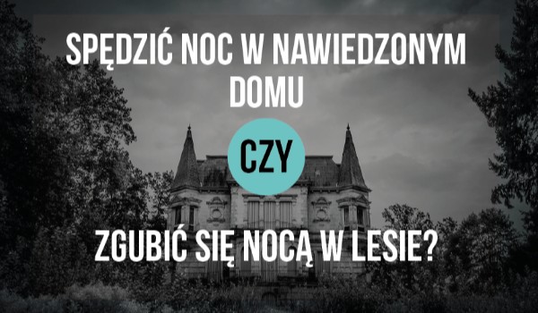 Wolałbyś/ wolałabyś spędzić noc w nawiedzonym domu czy zgubić się nocą w lesie? Odpowiedz na te i inne pytania i inne w ty quizie. Życzę dobrej zabawy.