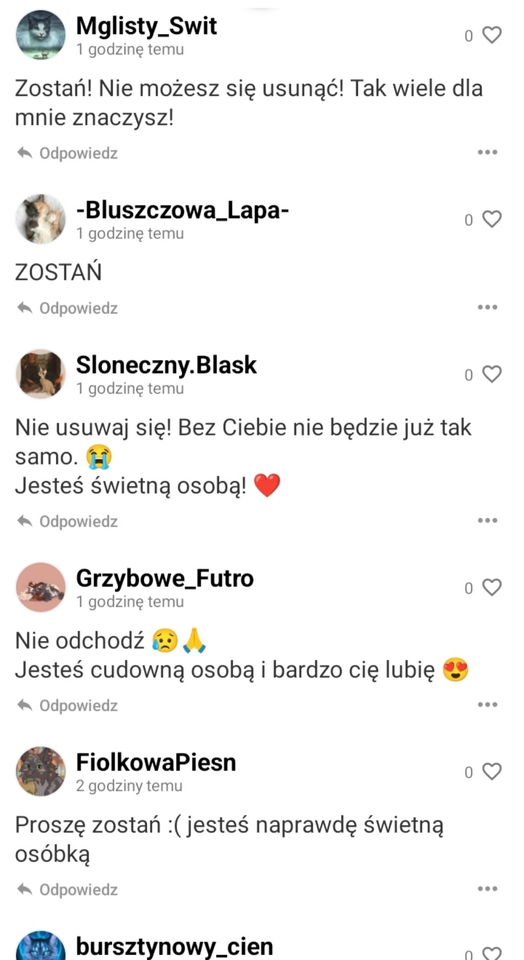 nawet te prośby brzmia tak samo zawsze cos w stylu "nie usuwaj się" "zostań" "jestes swierna osobka" czy cos, mowie wam ze wojownikary to jakas sekta kontrolowana przez jeden wielki umysl
