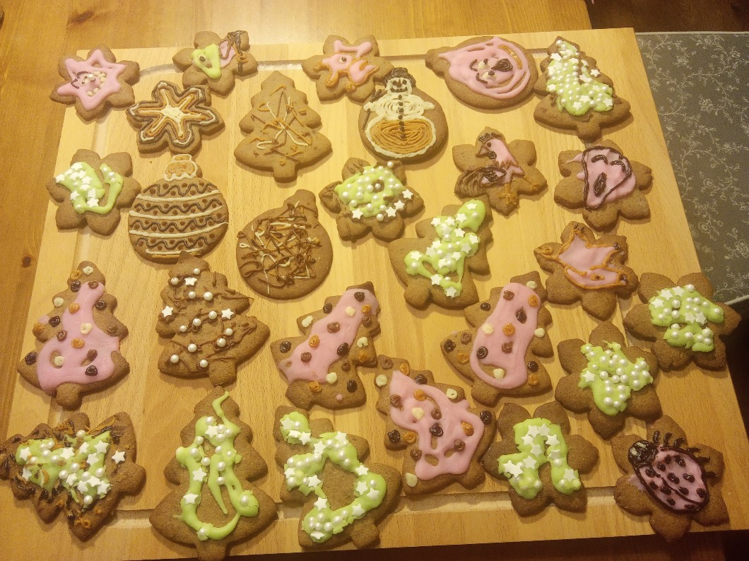 Btw. jakieś 20 minut temu skończyłam dekorować pierniczki z tatą (fotka na dole; moje mają dużo perełek i gwiazdek, chociaż nie wszystkie).