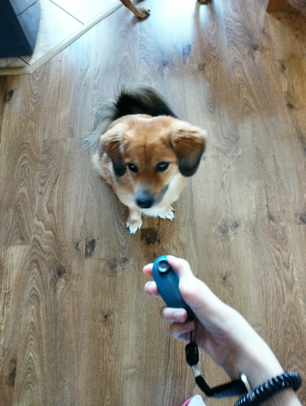 AUTOR•W środę wieczorem pojechałam z mamą odebrać moją siostrę z pracy w innym mieście. Wykorzystałam okazję i wstąpiłam w galerii do zoologicznego, gdzie (wreszcie) znalazłam całkiem fajny kliker. Oczywiście go kupiłam i następnego dnia zaczęłam z 'dziewczynami' nowa przygodę. Dziuniaczkowi spodobało się na tyle, że na samo słowo "kliker" oraz "nagroda" zaczęła merdać ogonem…❤️