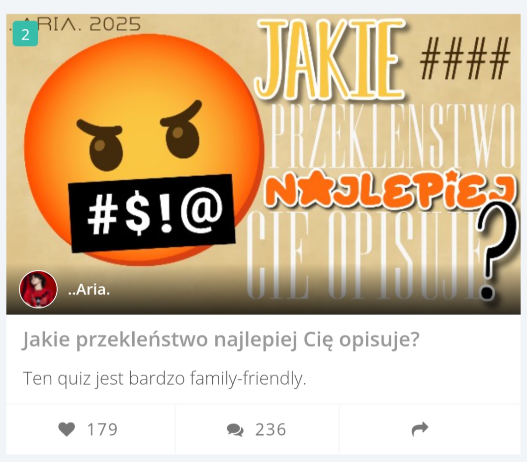 quizy i wpisy dodaję nieregularnie, tak samo jak z czasem, przez który dziennie jestem aktywna na stronie, chociaż póki co sporą przyjemność sprawia mi cokolwiek związanego z sameQuizy. Posty na tym profilu są o wszystkim i o niczym - nie mają określonej tematyki... Czytaj dalej