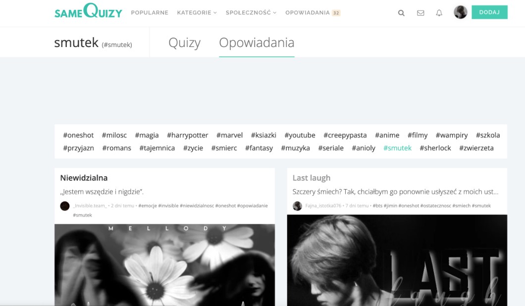 AUTOR•więc generalnie wyszukując opowiadań pod hasztagiem "smutek" wyświetliło się moje :,D