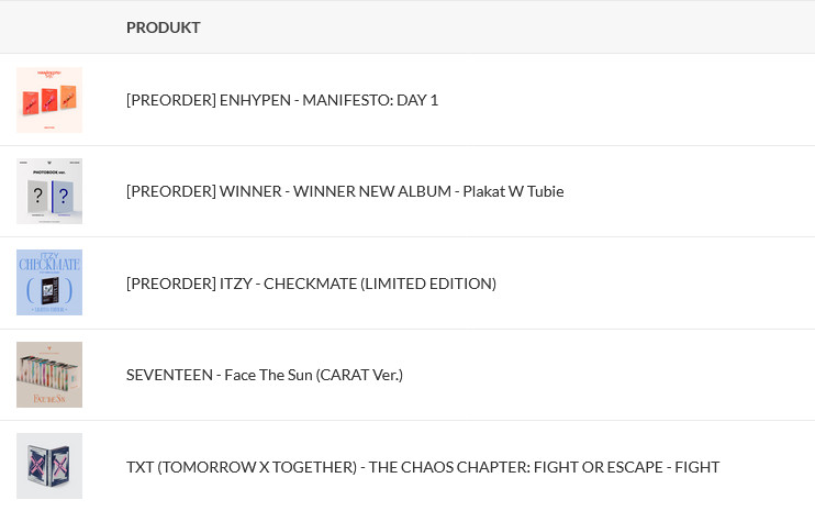 Będziecie chcieli jakiś unboxing? Mam zamiar zamówić 2 lub 3 albumy zależy na ile mi starczy ale raczej na dwa. Na pewno zamówię "Manifesto : day 1" od Enhypen i albo wezmę do tego "Ckeckmate" od Itziar w standard wersji (zamierzam oszczędzić trochę kasy bo mogłabym wtedy do tego kupić lomo karty Kai'a z EXO) albo zamiast tego "New Album" (YG ma bardzo kreativ nazwy albumów swoich zespołów, jak również np. "The Album") od kochanego WINNER.