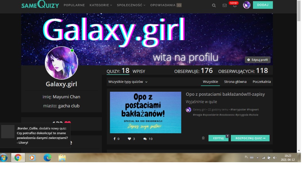 wpisała się pod tym : @Galaxy.girl