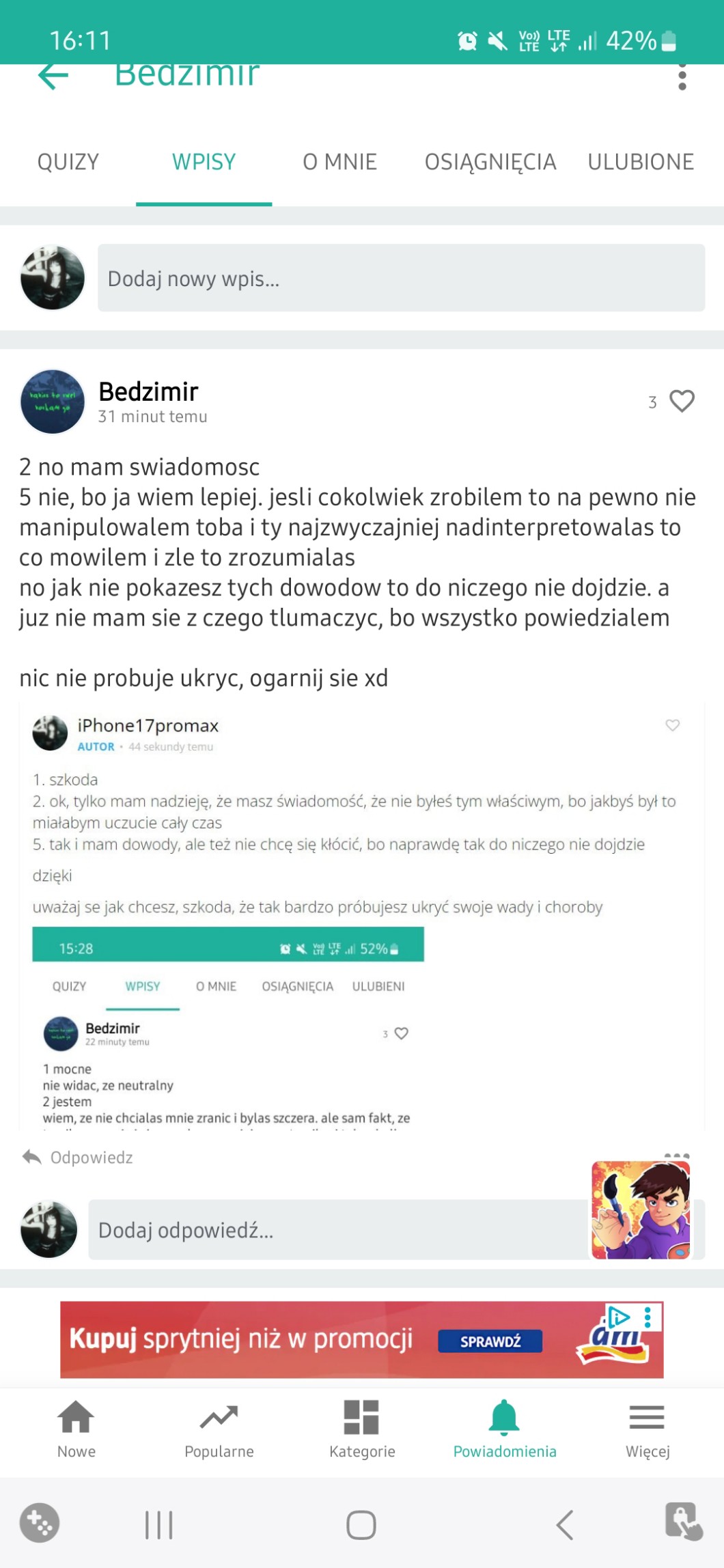 Przy pomocy wpisów możesz zadać autorowi pytanie, pochwalić go, poprosić o pomoc, a