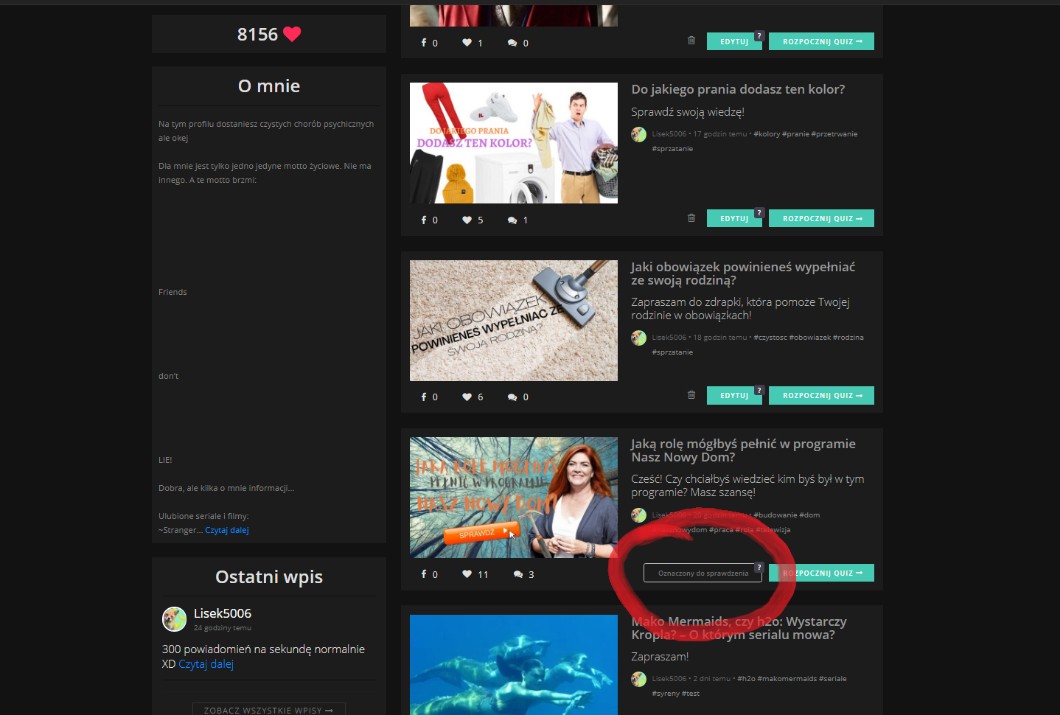wchodze ok pol godziny temu i zaden quiz nie jest na sg, a teraz ten z nasz nowy dom do sprawdzenia jest :DDDDDDDDDDD