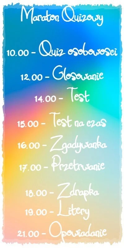 AUTOR•Okej. Specjał to będzie maraton quizowy @Varvena podeślesz? I może pokarze tak jakby pokarze siebie ,ale MOŻE.