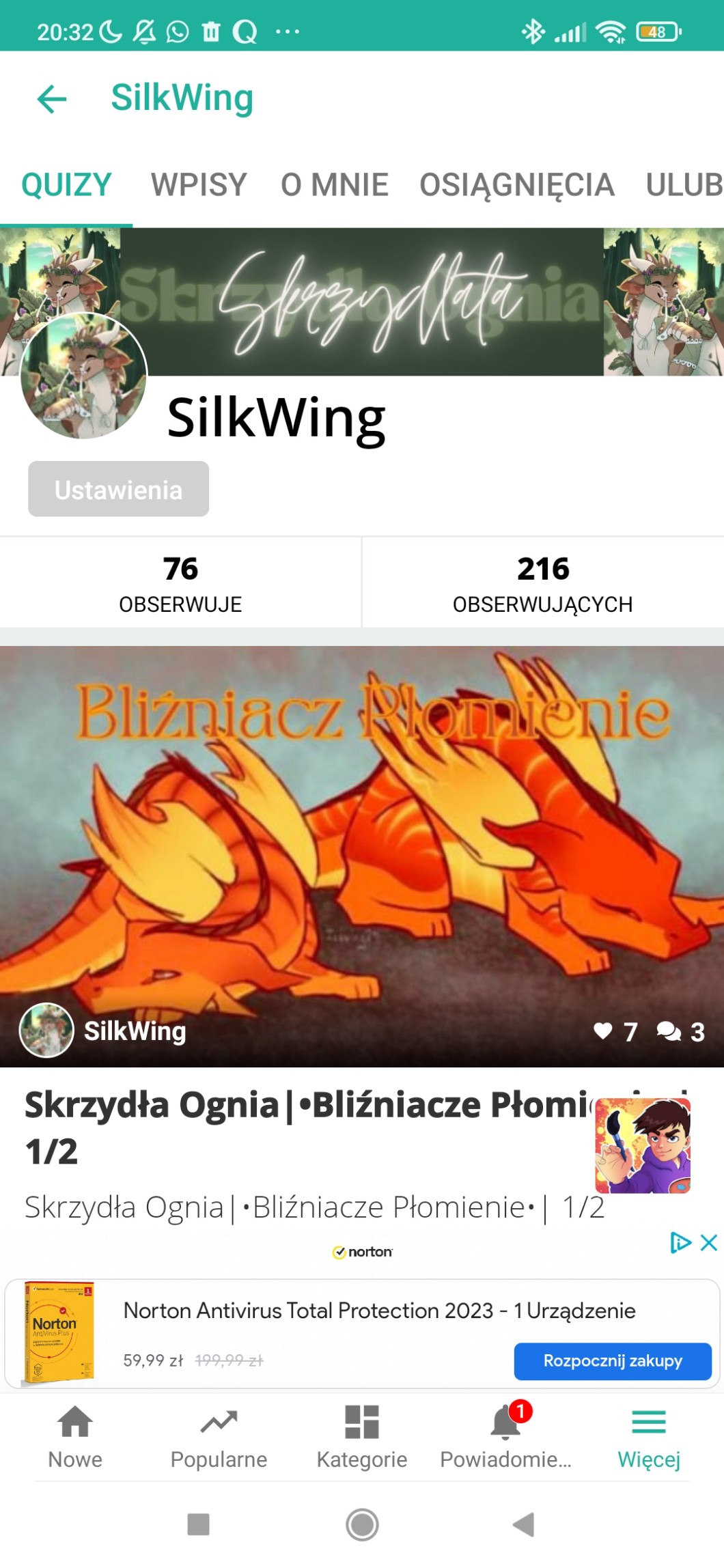 Nie spodziewałam się że Bliźniacze Płomienie tak bardzo wam się spodobają. Postaram się jak najszybciej napisać drugą część. Micie jakieś pomysły na quizy?