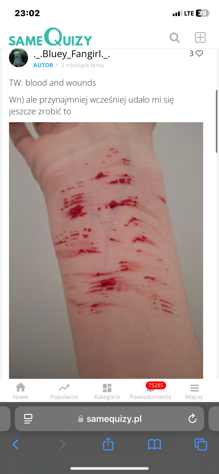 (jakaś typiara napisała pod jej wpisem że to jest atencja i to nie jest prawdziwe więc może i ma rację)