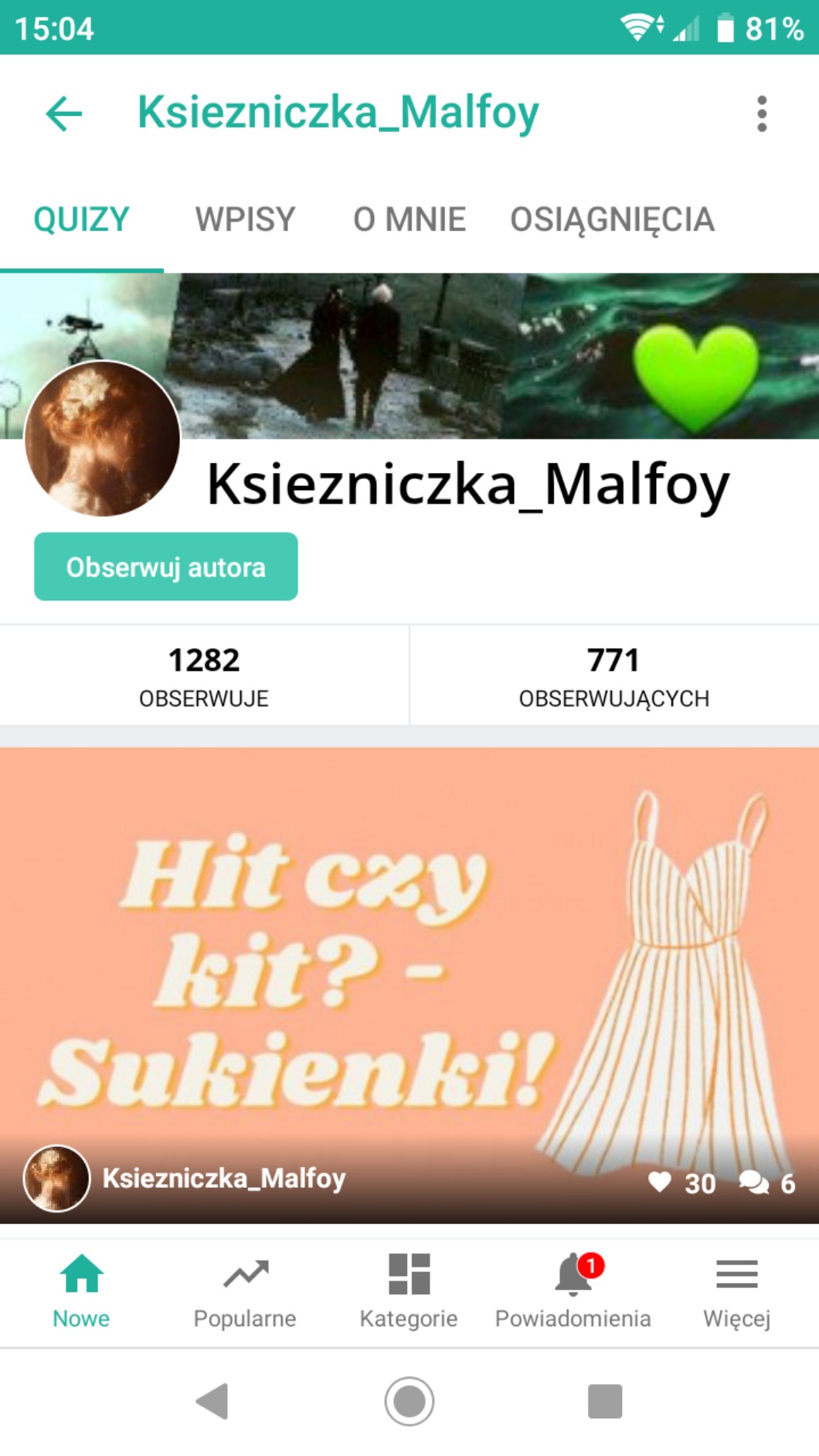 Powiem tyle, że nie ma obchodzą mnie już obserwacje… Najważniejsze są osoby, które poznałam, a nie liczba. Mogę mieć nawet 10 obserwacji, ale będą to osoby, które naprawdę mnie lubią. Dwie Frajdy mniej. Trudno. To pewnie przez moją nieaktywność, ciągle obiecywanie, że zrobię nominkę, quiz… Przepraszam Was za to… Nie mam czasu po prostu ostatnio na SameQuizy. Zrobię sobie małą przerwę i wrócę… Poczekacie na mnie? Po feriach powinnam wrócić. ❤️