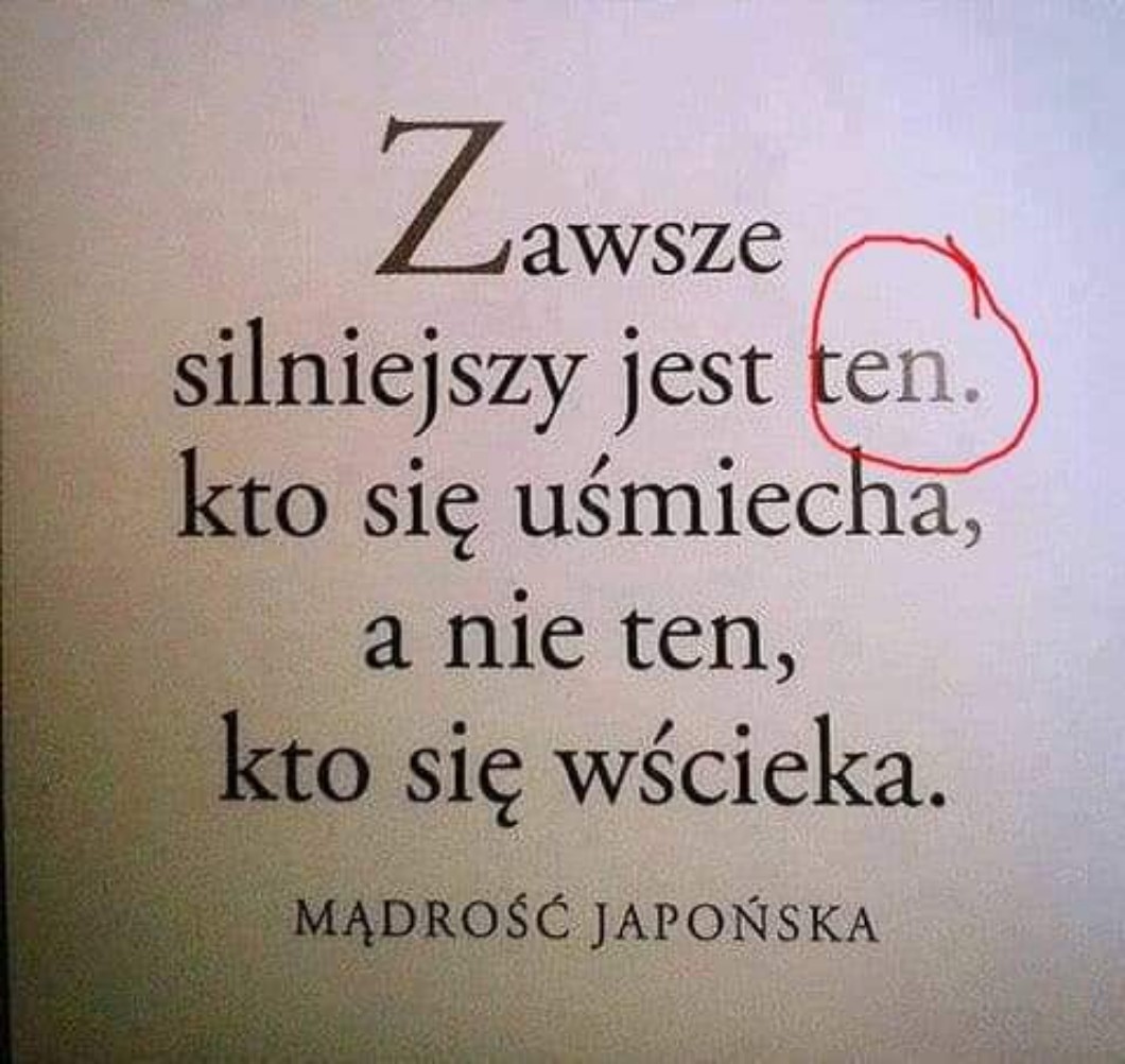 ,,Zawsze silniejszy jest ten. kto się uśmiecha, a nie ten, kto się wścieka” (od razu Po lewej stronie) (po ,,ten” naprawdę jest kropka🤣)