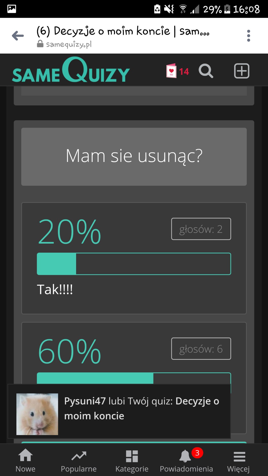Powiadomienie o mnie