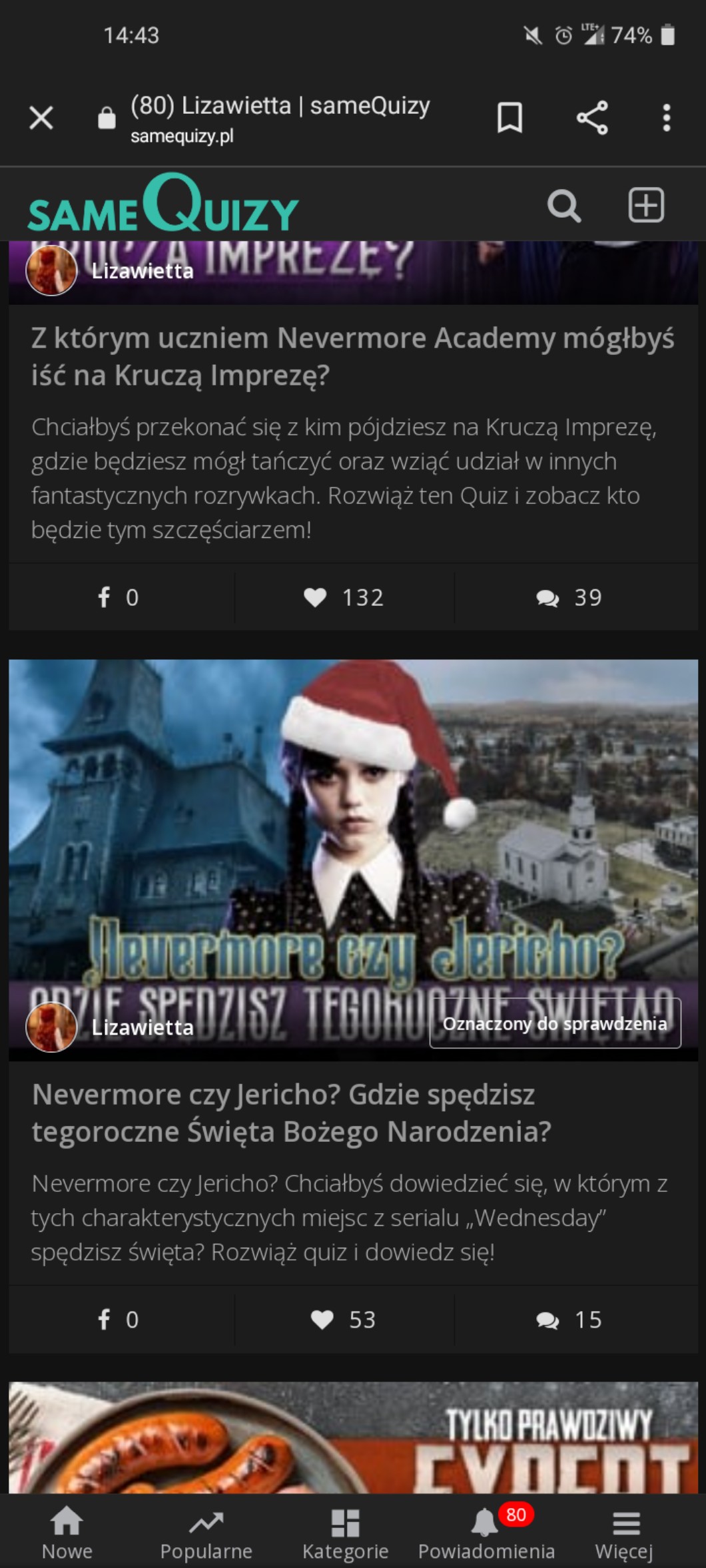 • Modzi oznaczyli mi quiz o Wednesday, nawet już pojawiła się miniaturka i szczerze mnie urzekła, jest śliczna