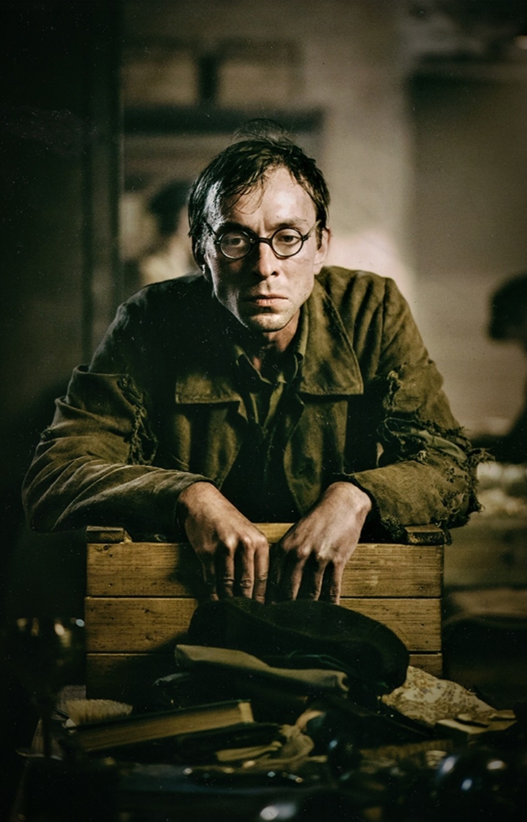 AUTOR•Mężczyzna na zdjęciu to bohater filmu „Sobibór”. Oglądaliśmy go na lekcji historii, akurat przerabialiśmy drugą wojnę światową, byliśmy na temacie o obozach koncetrancyjnych. Bohater na zdjęciu, grany swoją drogą przez Polaka, był Żydem, pracował w obozie przy biżuterii. Był poniżany i bity, i przysięgam Wam, że miał najbardziej hipnotyzujące, przejmujące, smutne, pełne bólu spojrzenie. Myślę, że to właśnie z tego powodu wstawiam to zdjęcie i ten wpis. To spojrzenie ciągle mnie prześladuje, a od obejrzenia filmu minął ponad miesiąc. Zdradzę Wam jeszcze jeden mały sekret. Ta postać wygląda dokładnie tak, jak wyobrażałam sobie głównego bohatera większego tekstu, przy którym pracuję od sierpnia. Gdy zobaczyłam go na ekranie, czułam się, jak gdyby ktoś wkradł się do mojego umysłu i wyjął go z mojej głowy. Może to wszystko jest powodem, dla którego to zdjęcie stało się dla mnie tak niewyobrażalnie ważne.