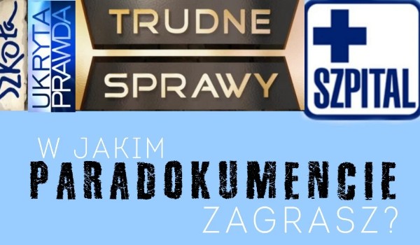 zmija66 W jakim paradokumencie zagrasz? Sprawdź! zmija66 • 5 lat temu • #emocje #podroze #przygoda #seriale #styl 28 18 Rozpocznij quiz