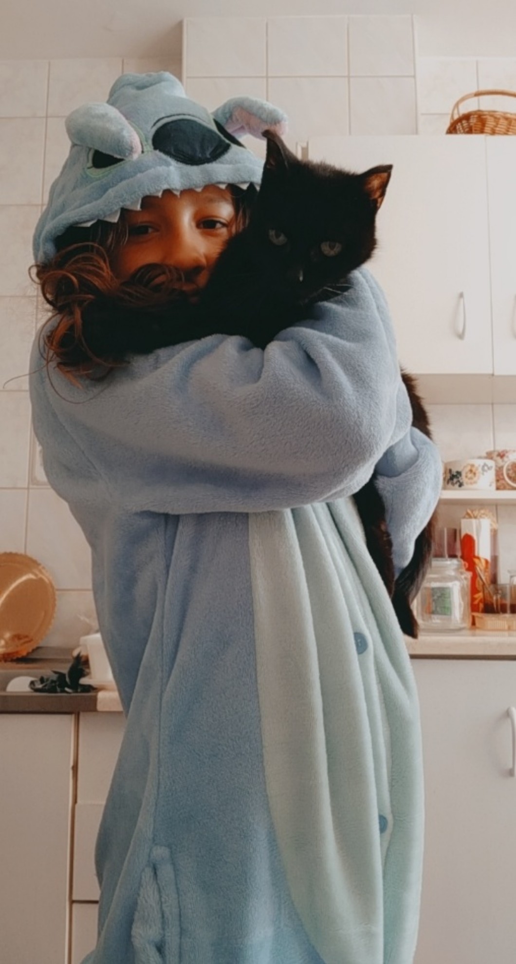 Ja właśnie przytulam mojego kotka jak ktoś nie wie to mam kota 🐈⬛ jest czarny 💗w sumie na końcu dodam jego zdj ze mną oczywiście bez twarzy 😅