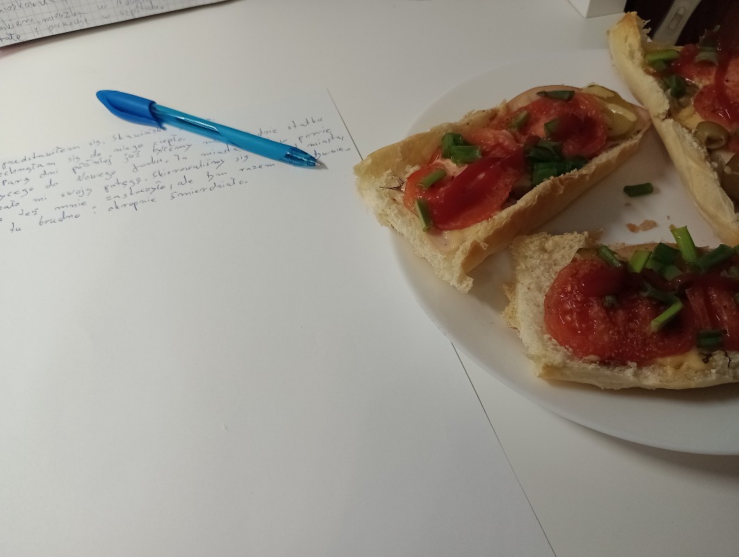 •W końcu zawitał jakiś ustatkowany wpis. Byłam z @Ara_biankaa na dworzu i aktualnie wracam do domu. Pogoda jest tak cudowna, że po prostu brak słów. No i robiłyśmy naszą słynną ,,strzykawkę". Mianowicie bierzesz rurkę z kremem (waniliowy najlepszy) i wciskujesz tam paluszka. Krem ci wtedy wypływa (a to jest przez wielu pożądanę!), po czym jesz sobie rurkę z paluszkiem🤤 palce lizać.