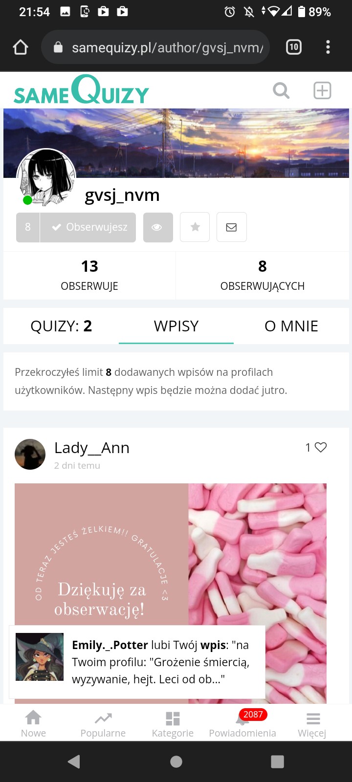 @Happy-moon ja tak samo :(, i nie mogę wysłać podziękowań za obserwację >:|