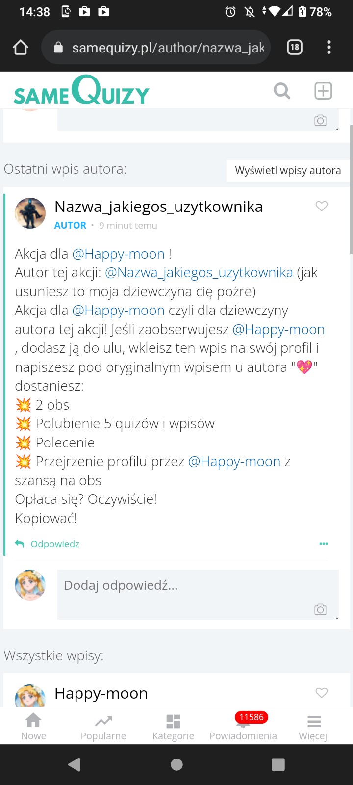 Przy pomocy wpisów możesz zadać autorowi pytanie, pochwalić go, poprosić o pomoc, a
