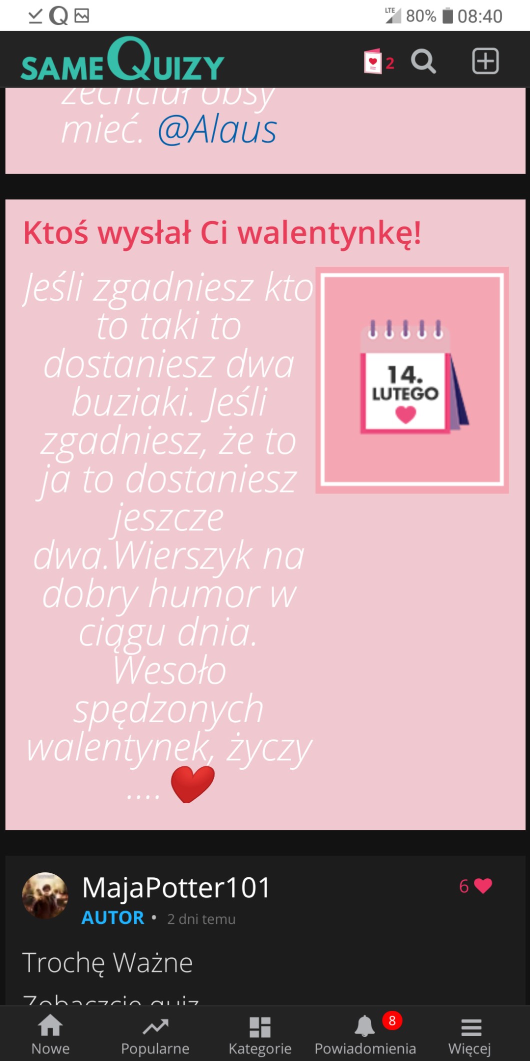 AUTOR•Pooolecam @Alaus jest bardzo miła i ma super kreatywne quizy (np. Co o tobie myśli … Albo nowe jej opowiadanie)
