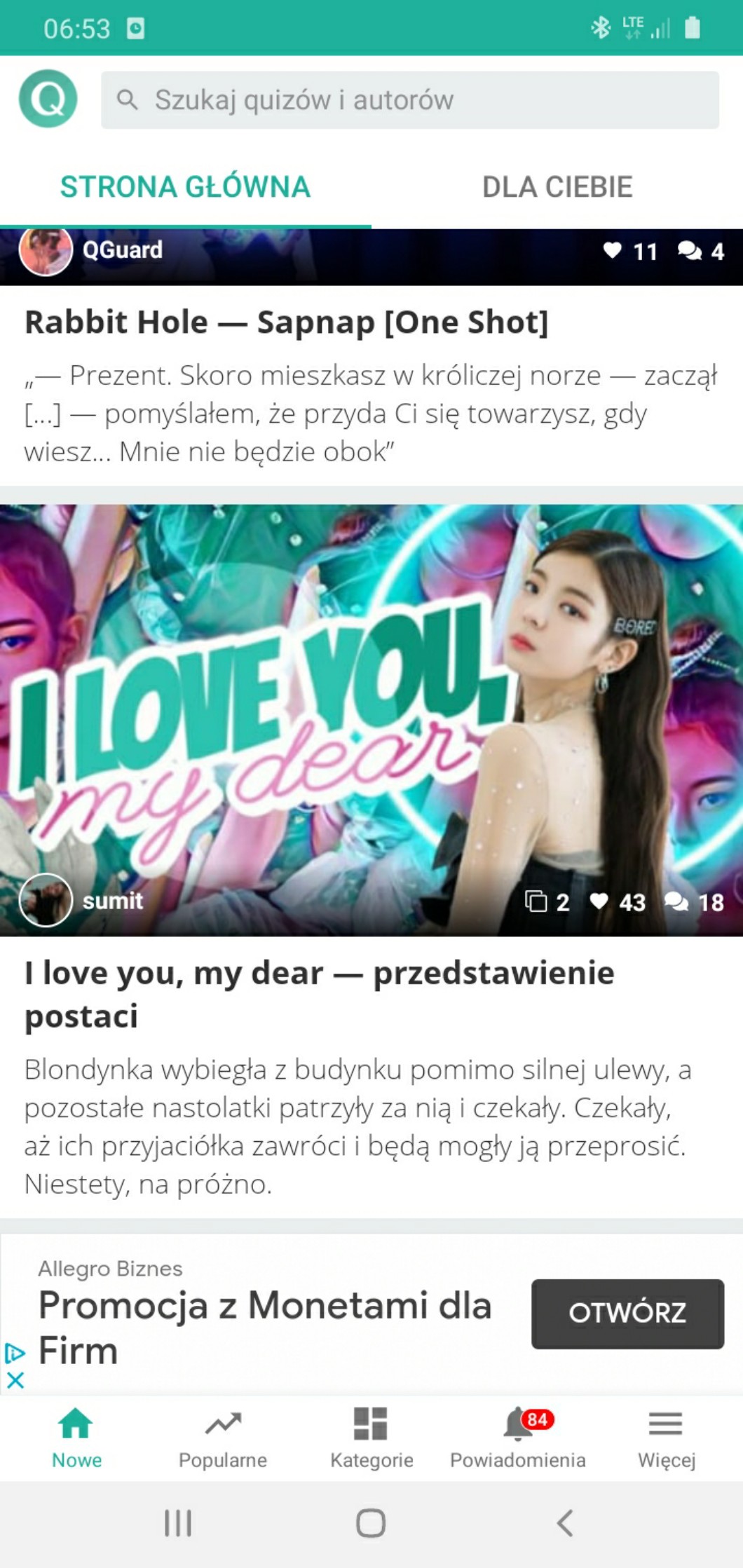 Ale myślę, że nic poza przedstawieniem postaci nie będzie na Głównej, bo piszę jak piszę i się ludzie załamią-