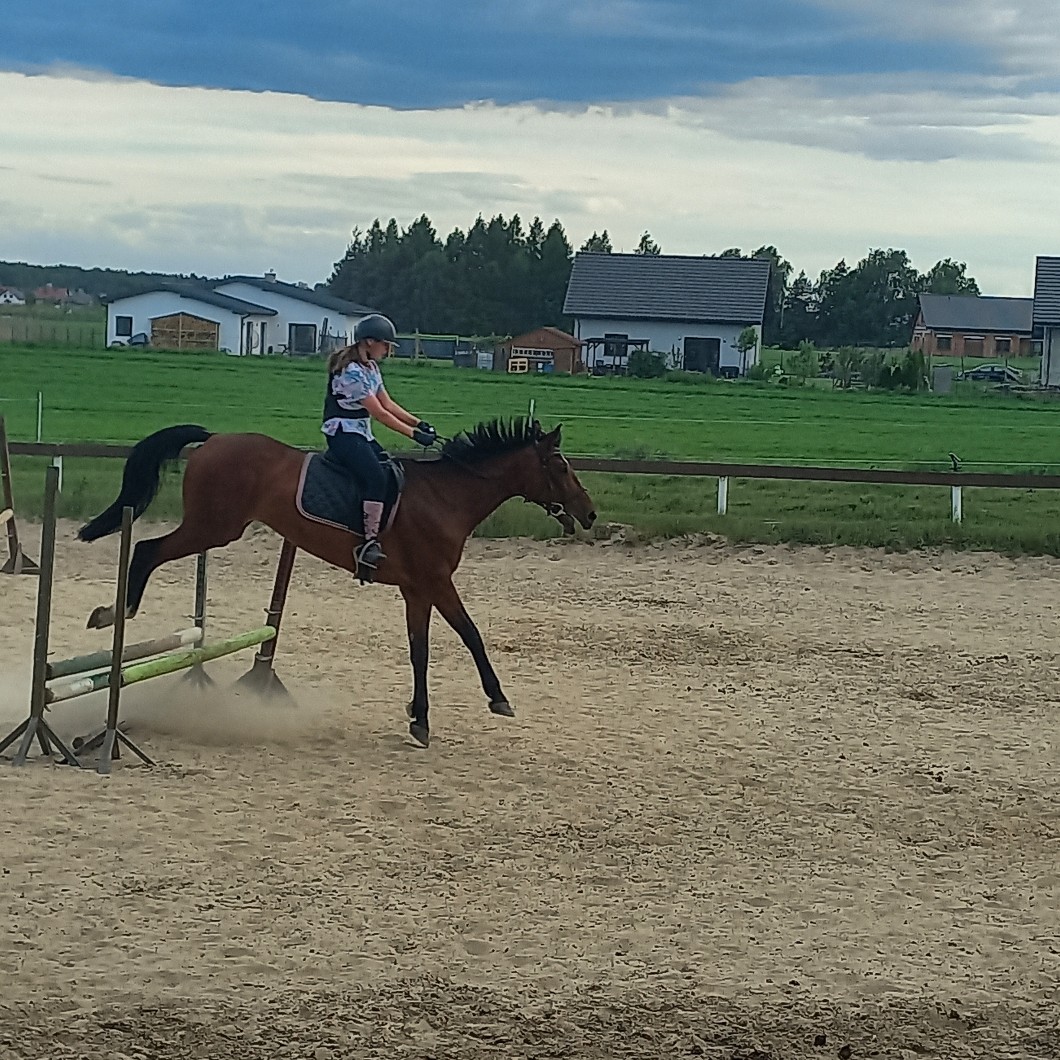 Super, że parkur Ci się podobał. Biedny koń na tym zdjęciu, ale dobrze, że się utrzymałaś.