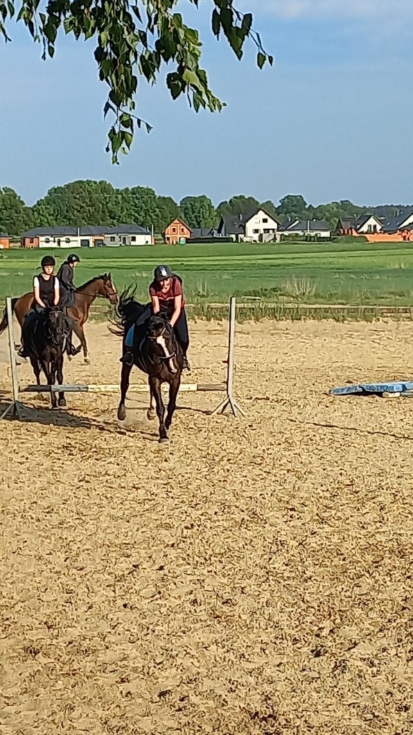 Ale od początku – najpierw ćwiczyliśmy czworobok na BOJ, ogl nie było źle i widać poprawę od ostatniego razu, całkiem zadowolona jestem ❤️🐴