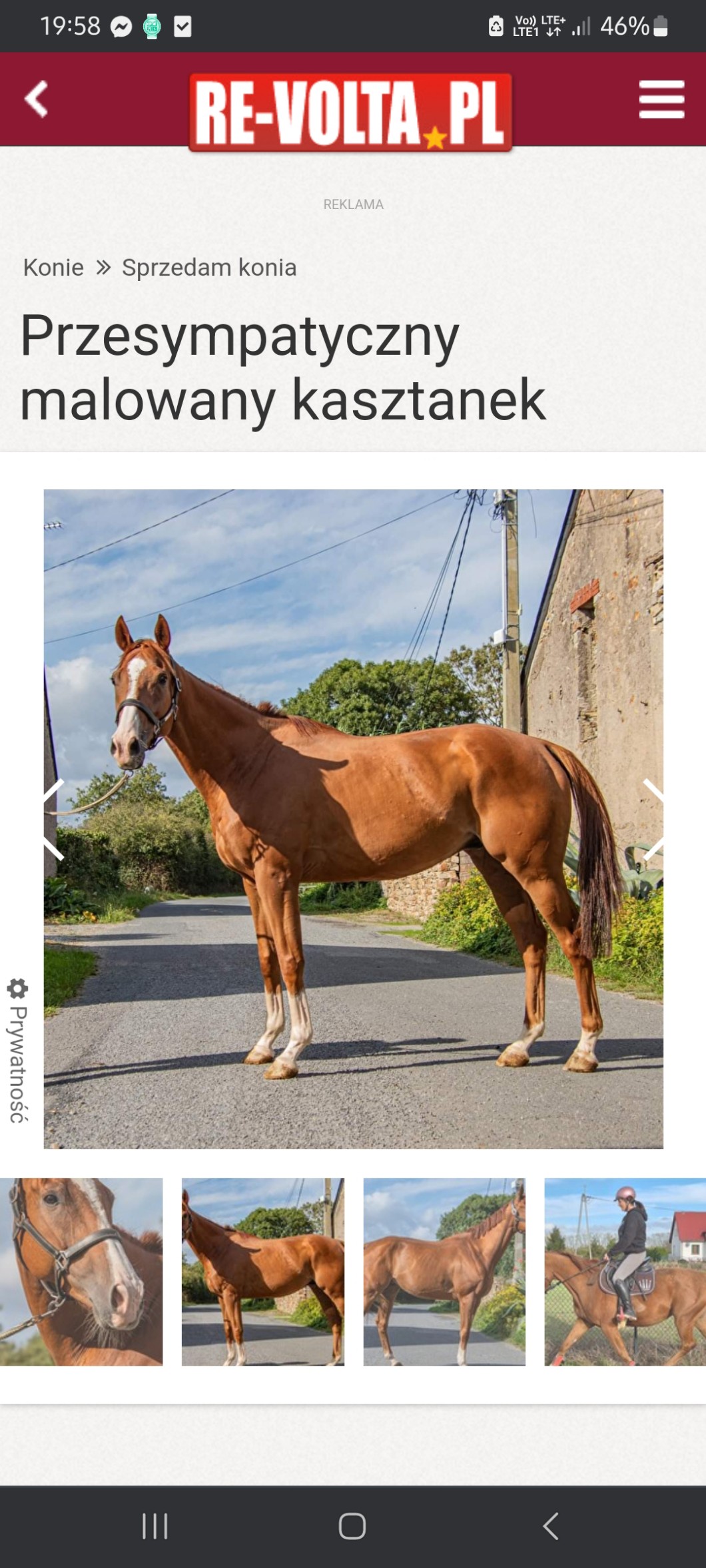 Cudny konik <3 Mi się niestety nie udało kupić tej klaczy APH o której ci kiedyś mówiła ( bodajże u mnie na profilu :) ), ktoś był chyba szybszy bo ok. tydzień później ogłoszenie zniknęło z OLX. Teraz właśnie szukam na Re-volcie i znalazłam taką boską klaczkę, 2 letnią, maści gniadej z predyspozycjami do skoków oraz hodowli. Jest przecudowna, i jest stosunkowo blisko mnie, tylko, że trochę to ona kosztuje bo jest po dobrym ojcu, bodajże Fodel się nazywał. Z tego co się wczytałam był on na MŚ w chyba 1973 roku. Sama Hesbeth o której cały czas mówię, została czempionką Klaczy Dwuletnich na Młodzieżowym Czempionacie w Opatowcu. Co do innych cech to ogólnie spoko konik, bo ma już te podstawowe umiejętności nabyte jak np. przyzwyczajenie do kowala, chodzenie na uwiązie, spokojne stanie w stanowisku, a w dodatku umie już pracować z ziemi. No i plusem jest to, że takie skoki w korytarzu ma już za sobą.